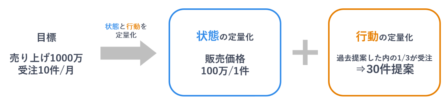 目標の達成度合いが本人も、チームや上司に報告する時も 分かりやすくなるよう内容を定量化して、進捗管理しやすくする |