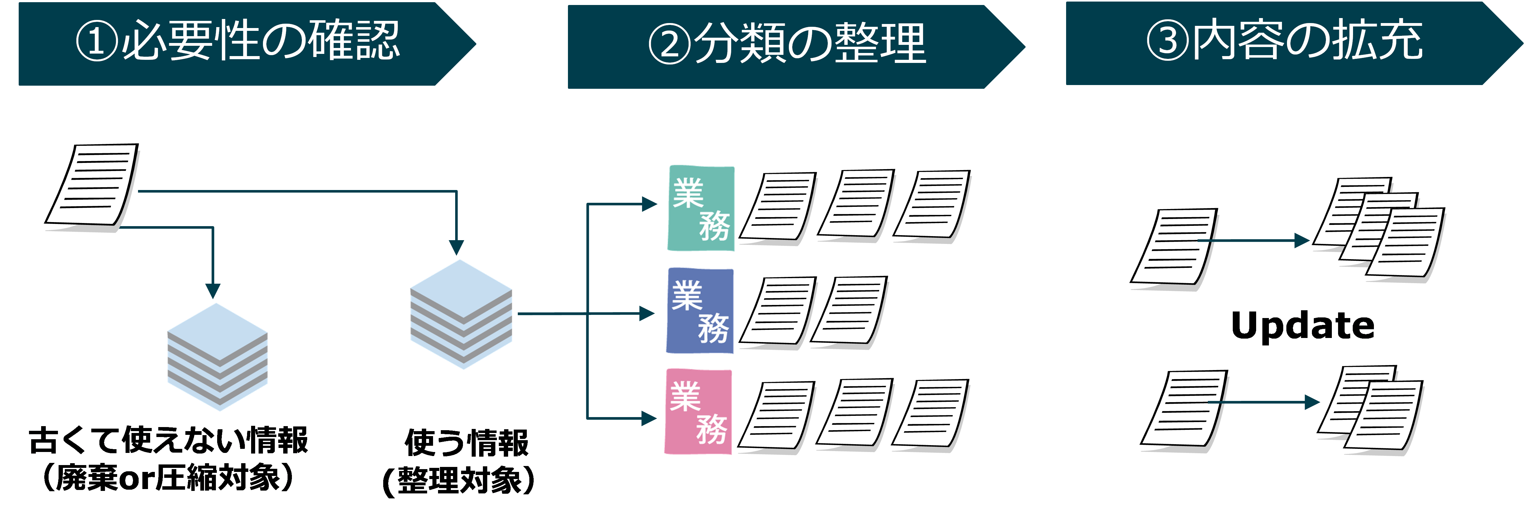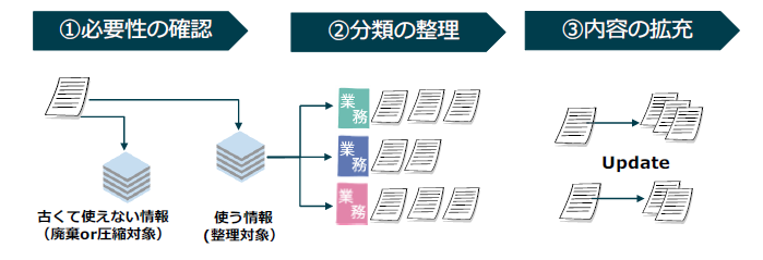 蓄積されっぱなしでは、新しい情報と古い情報が混在し、利用者にとって使い勝手が悪く、混乱を招く要因になります。