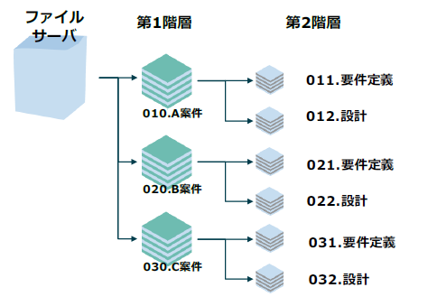 内容を業務ごとに分類し、使い勝手が良いように格納先を整理します。